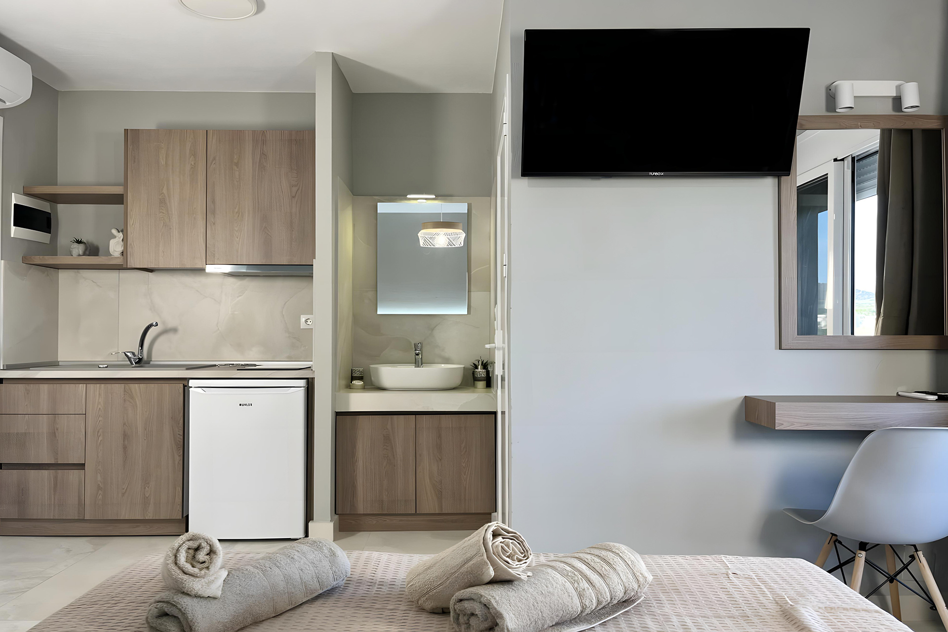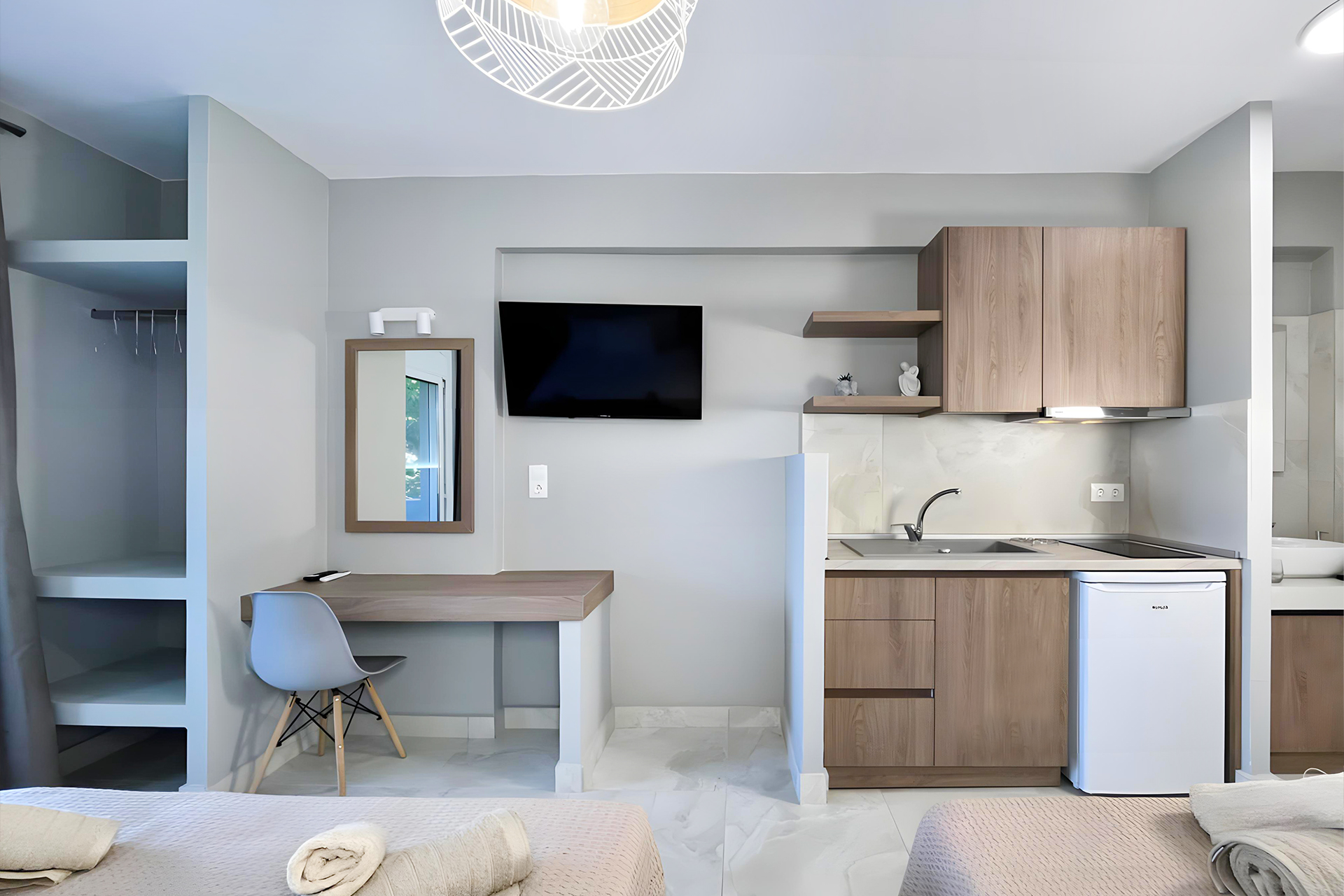 Discover our collection of thoughtfully designed rooms and studios, ideal for couples, friends, or families. Each space blends functionality with style, offering comfort, aesthetics, and all the modern amenities for a relaxing stay.